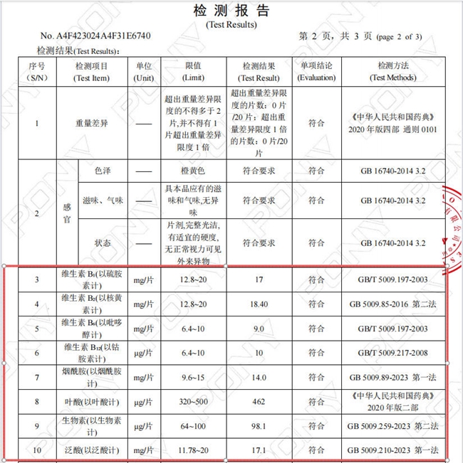 配方研发立足 “全营养覆盖 + 高活性适配”,完整包含 8 种人体必需的 B 族维生素,每片精准配比:维生素 B1 16mg、维生素 B2 16mg、维生素 B6 8mg、维生素 B12 8μg、烟酰胺 12mg、叶酸 400μg、生物素 80μg、泛酸 14.73mg,一站式填补日常饮食中可能存在的营养缺口。针对现代人群常见的作息不规律、饮食不均衡等情况,配方中合理强化关键成分含量,助力改善身体状态;同时采用高活性营养形态,维生素 B12 选用甲钴胺,叶酸采用 5 - 甲基四氢叶酸,无需肝脏二次转化,可直接被人体吸收利用,适配不同人群的吸收特点。B6 剂量严格遵循温和安全标准,适合长期日常补充,无需担心额外负担。